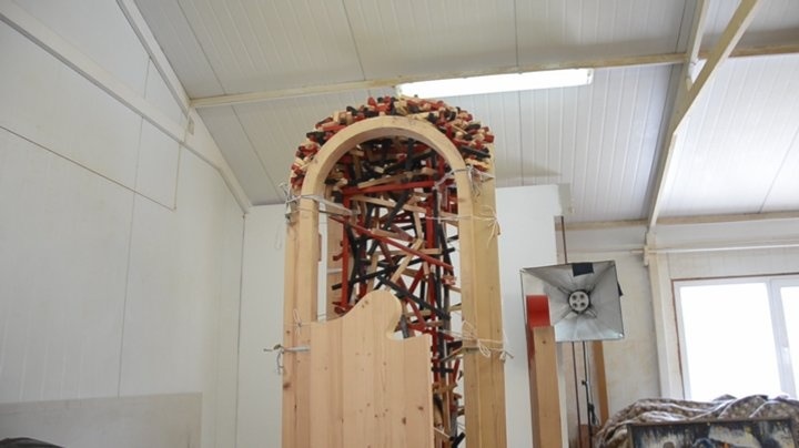 - Ця робота з проєкту «Вади цивілізації» й називається «Вісті з храму війни. Живий, поранений, вбитий та безвісти зниклий». Символічний храм війни, в якому тісно переплелись, життя, кров та смерть.
