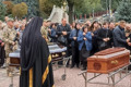 Після останнього цілування під невтихаючий дощ нескінченний людський потік, що тягнувся за двома домовинами, оповитими синьо-жовтими знаменами, вирушив на сільський цвинтар.