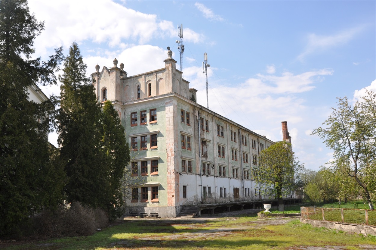 З нашим «гідом» Мирославом Йосиповичем ми потрапили на територію з тильної сторони через зруйновану огорожу. Густі зарослі рослинності, занедбані підсобні приміщення з аркоподібними вікнами, з усього видно, збудовані ще за Австрії, з полишеним всередині різним сміттям.