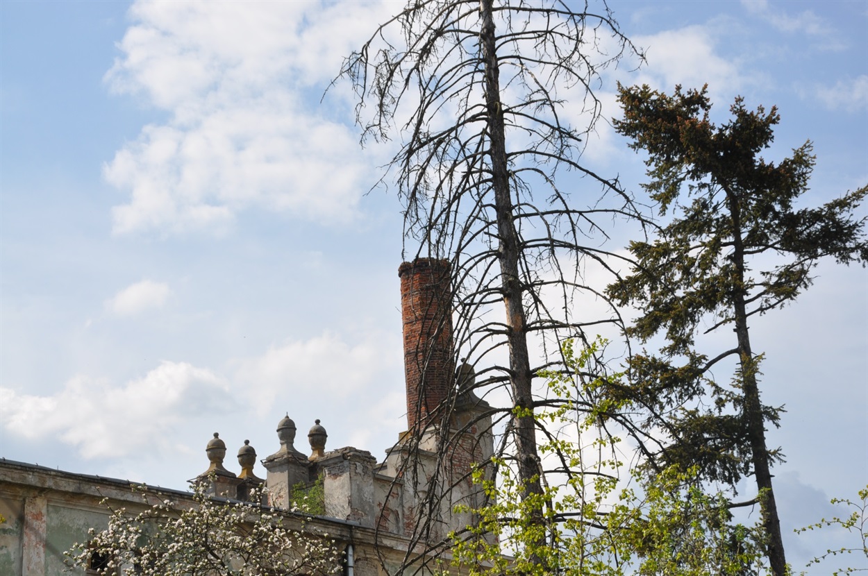 Зазирнули в одне приміщення, друге: від постійного протікання покрівлі подекуди нависла стеля чи й уже провалилася; чорна пустка замість вікон і дверей; від затікання дощів на зовнішніх стінах обсипалася штукатурка і лущиться цегла; на дахах багатьох будівель повиростали вище людського зросту берези тощо. Натрапили й на сліди якихось розкопок – мабуть, і тут шукали «золото Полуботка» (чи то Лянцкоронських?).