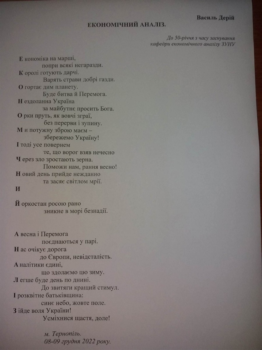 Якось автор надіслав мені в месенджер свого «свіжого» акровірша з відповідним коментарем: «Економічний потенціал України невичерпний, люди працьовиті. Бракує нам єдності та відповідальності на виборах».