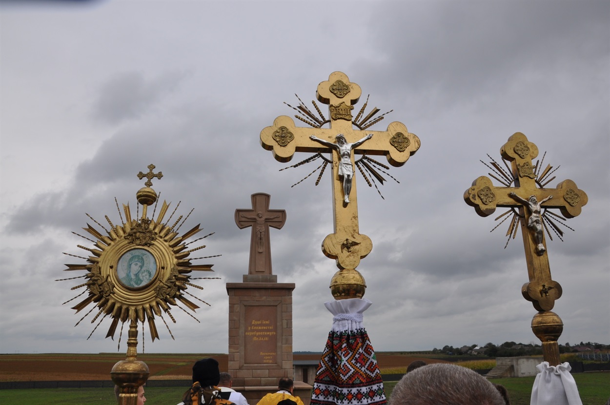 Минулої неділі, 5 жовтня, обидві чисельні християнські конфесії – православна і греко-католицька – по завершенню святкових літургій процесійно на чолі з парохами вирушили, співаючи релігійних пісень, на місце освячення споруди. Чин освячення здійснили настоятелі місцевих храмів – отці Богдан Єдинак (ПЦУ), Василь Левицький (УГКЦ) і Мар’ян Попеляр (РКЦ в Україні).