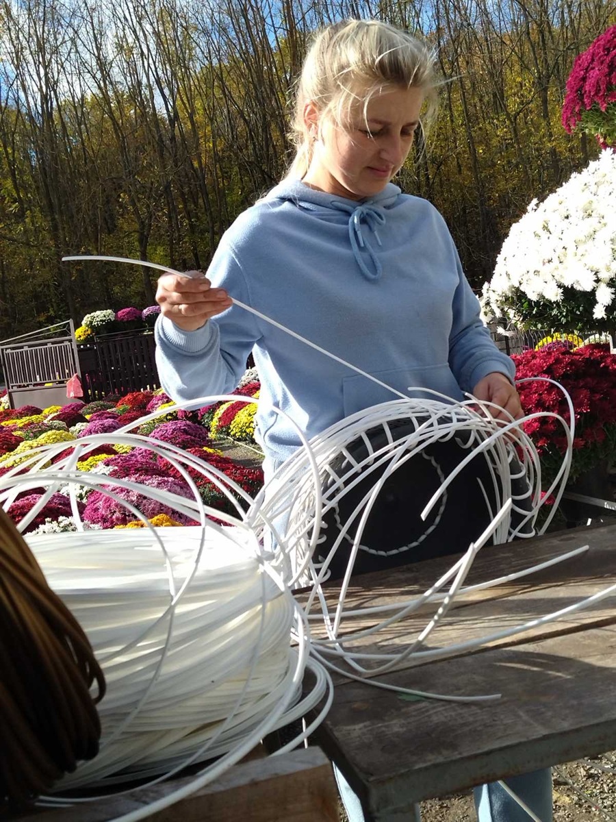 «Матеріал надзвичайно щільний, твердий, то ж працювати з ним важко», – зізнається щиро. Воно й справді: адже, щоб надати штучній лозі бажаної форми, доводиться прикладати купу фізичних зусиль. Однак майстриня неабияк старається, щоб з-під її рук виходили найдосконаліші вироби. Так собі постановила: кошики – суттєве і гармонійне доповнення до вирощуваної краси. Оригінальний та практичний садовий декор, свіже віяння часу.