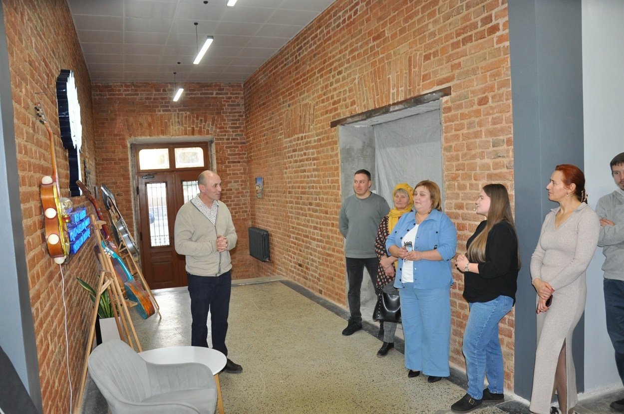 Автор виставки Остап Барановський, як художник, багато допомагав у дизайні. Ще минулого літа виник спільний задум: залишити на стінах будівлі відбиток частинок нашого міста. Насамперед для комфорту працівників, які б мали бажання з охотою приходити на роботу, зручно себе тут почували, не кажучи вже про відвідувачів. І ось настав той момент, коли ми можемо насолодитись мистецтвом, яке буде увіковічнено на багато десятиліть. Оскільки, зі слів пані Тетяни, дана картинна колекція буде викуплена у власність закладу. За задумом, біля кожної роботи міститиметься QR-код й за посиланням можна буде більше дізнатись про зображену пам’ятку. Крім цього, виведена підсвітка під відомі чортків’янам вітражі, які багато років були тут встановлені. Хоча вони ще з радянських часів, однак їхня художня цінність досить велика.