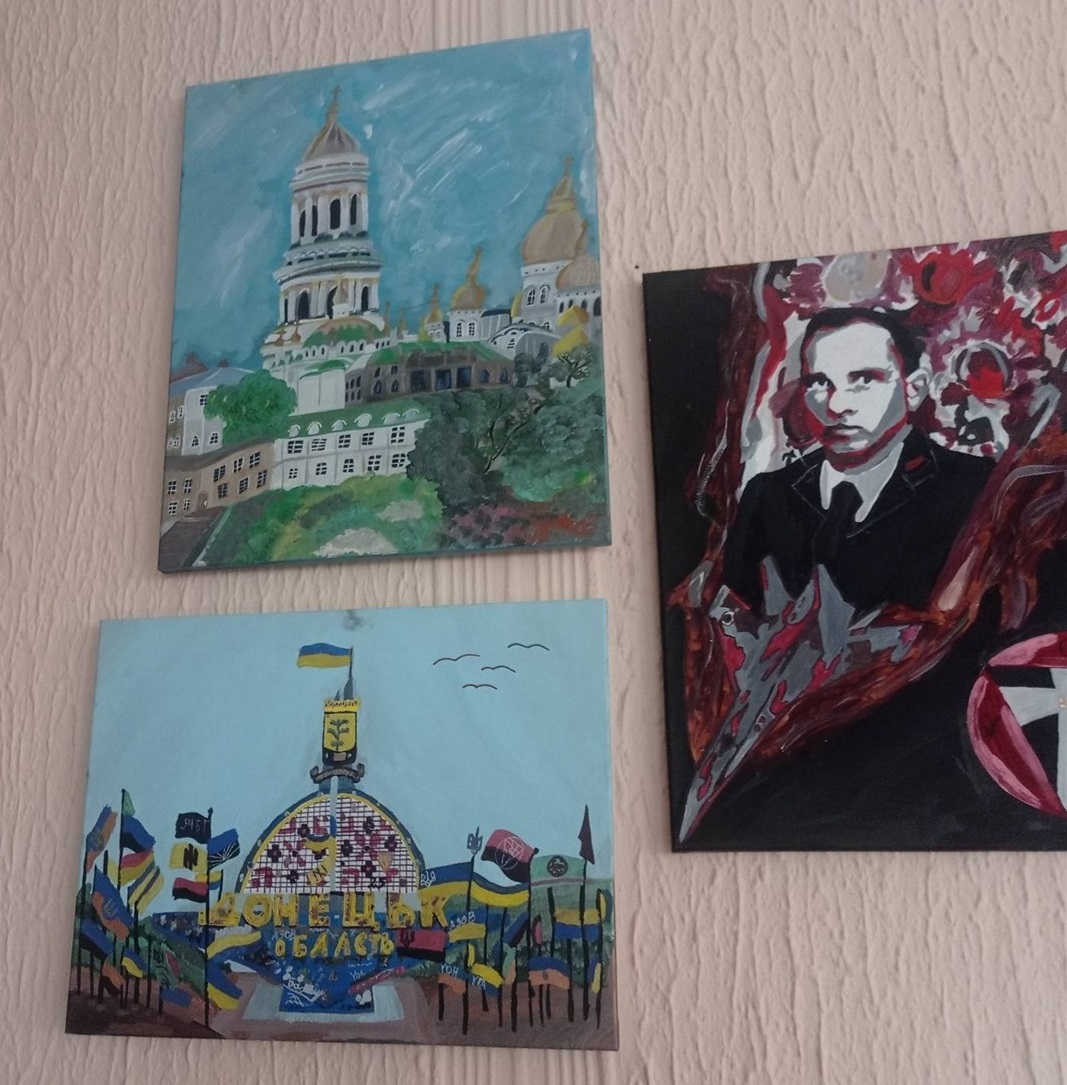 Вглядаючись в картини, вбачаємо – це не дитячі фантазії, а щирі й болючі образи: воїни на передовій, обличчя тих, хто бореться за свободу, славетні постаті історії нашого народу. На полотні оживають і релігійні сюжети – як символ віри та надії, що підтримують українців у найважчі часи.