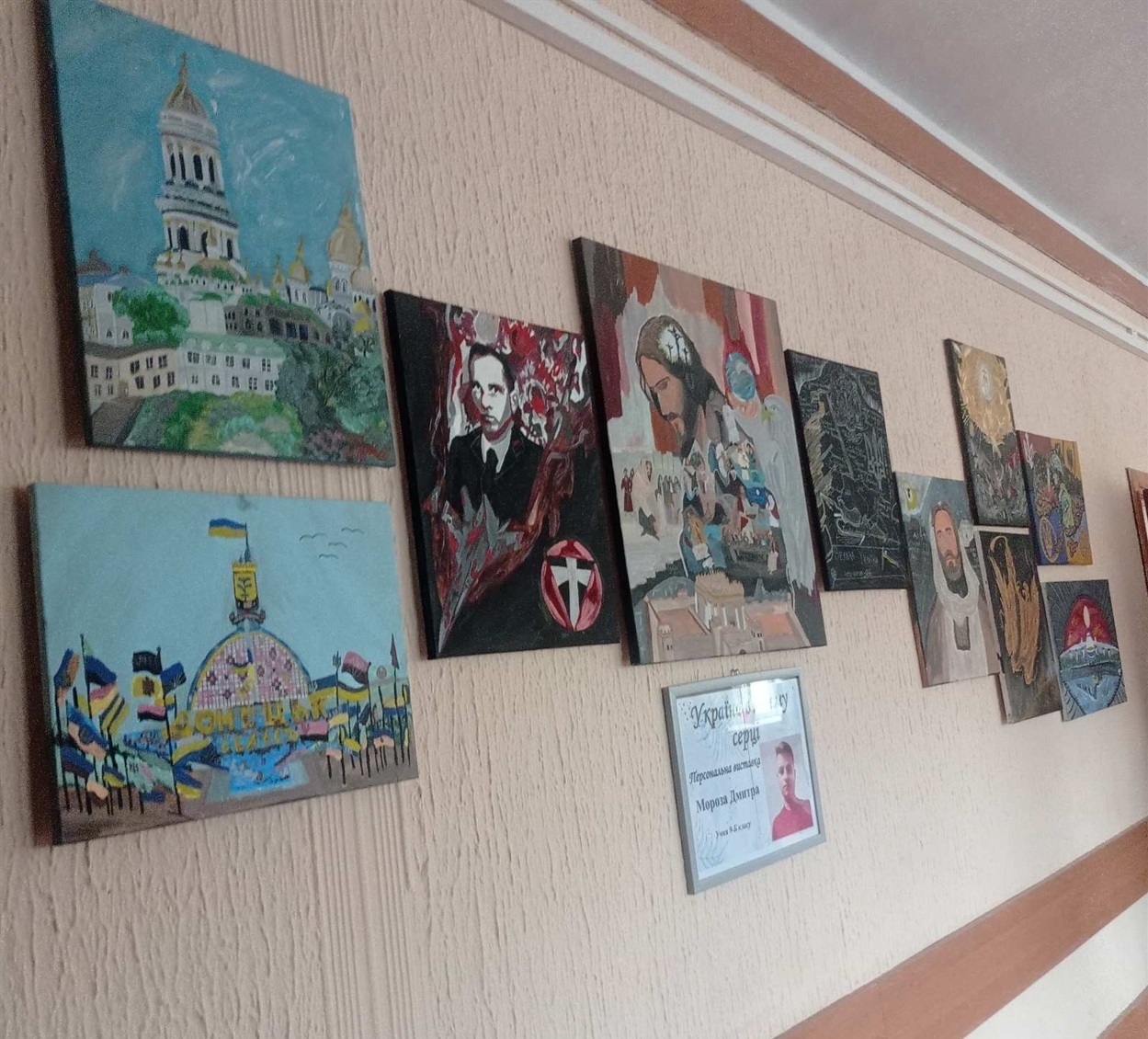 У Чортківському ліцеї № 7 красується експозиція картин учня 9-го класу вказаного навчального закладу Дмитра МОРОЗА. Направду – захоплююча! Це не просто роботи школяра – це глибокі полотна, що відображають сучасну українську реальність, історію та духовність.