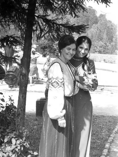 То були зйомки фільму «Червона рута» – 1971-го року, 55 літ назад. Власне літ, бо влітку, в липні (частково захопивши ще й серпень). Навіть у Карпатах, в Яремчі, тоді стояла властива маківочці літа надокучлива спека. Учасники зйомок часом аж умлівали у вовняному сценічному одязі, інколи – в перуках, під немилосердним сяйвом прожекторів, щільно накладеним гримом. Принаймні так згадує присутня на оцій давній світлині чортків'янка Христина Яремчук. Вона – зліва, разом з народною артисткою України Софією Ротару, яка лиш робила перші кроки на пісенний Олімп, тож слава і всенародне визнання були в неї ще попереду.