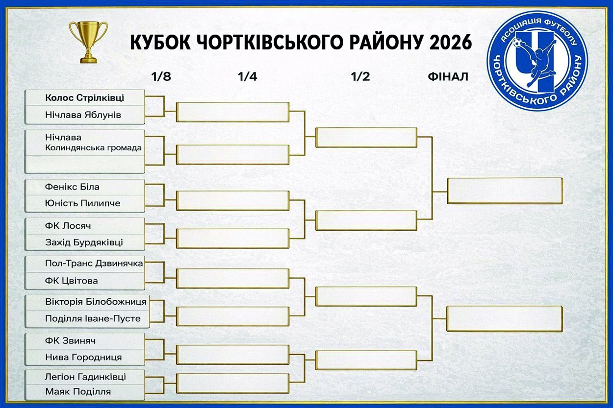 Кубковими матчами стартував футбольний сезон на Чортківщині. У чотирьох зустрічах переможця вдалося визначити лише у серії післяматчевих пенальті. З сіткою розіграшу кубка можна ознайомитися нижче. А вже цієї неділі у двох групах (по 8 команд у кожній) регіональної ліги стартує районна першість.