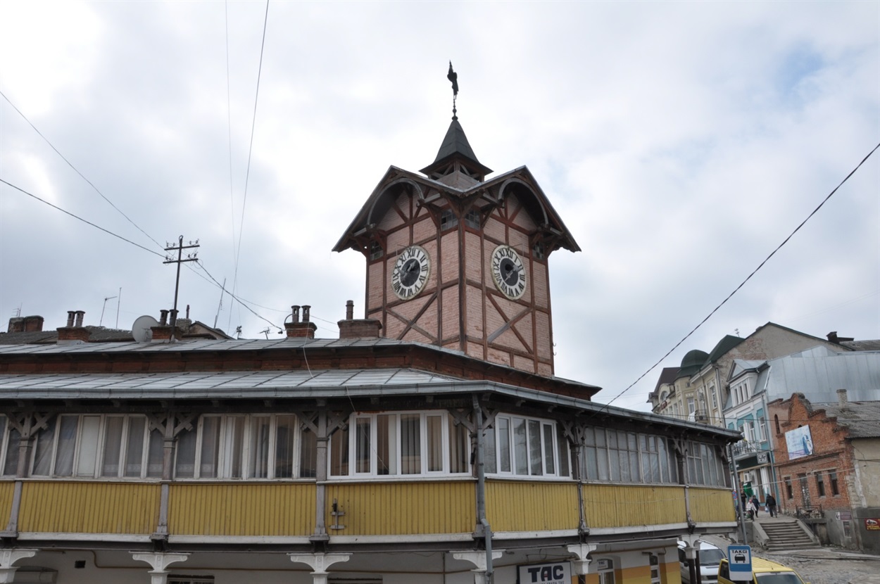 Пам’ятка архітектури місцевого значення; має унікальний для України вигляд завдяки фахверковій (нім. Fachwerk – «каркасна споруда») вежі. Споруджена у ХІХ ст. Біля неї збереглись торгові ряди (також XIX ст.) у вигляді двоповерхової споруди з колонадою.